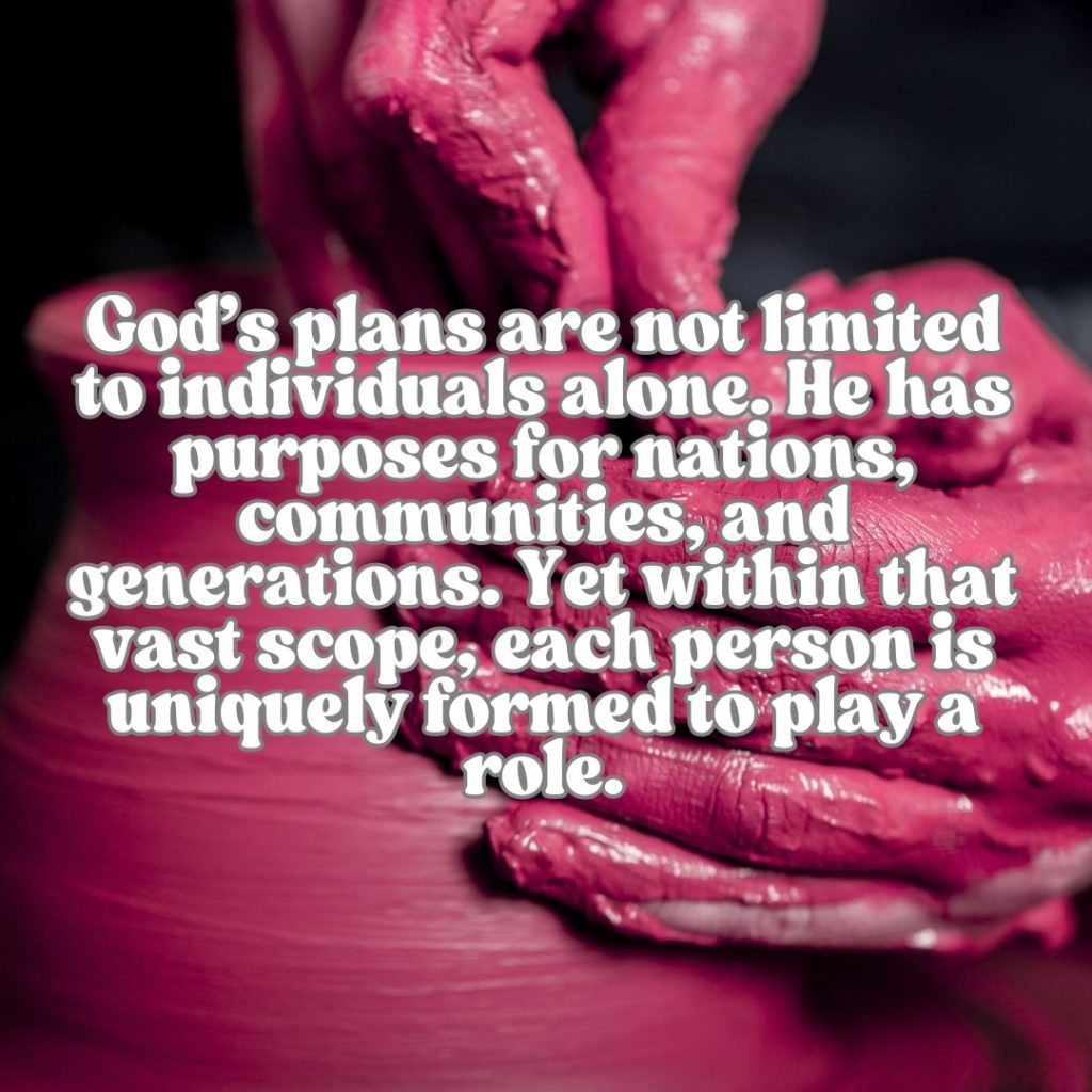 God’s plans are not limited to individuals alone. He has purposes for nations, communities, and generations. Yet within that vast scope, each person is uniquely formed to play a role. This balance, between the global and the personal, reveals the depth of God’s sovereignty.